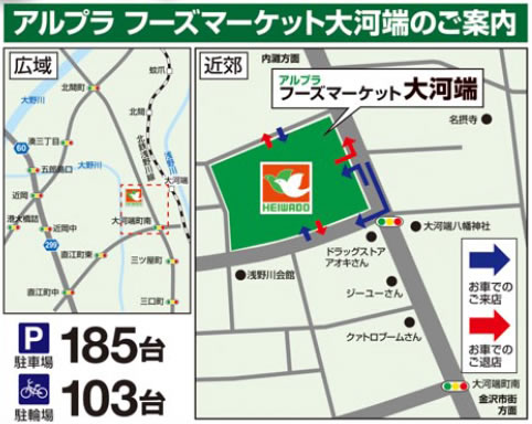 平和堂は、7月17日(金)石川県金沢市に「アルプラ フーズマーケット大河端」(以下、「当店」)をオープンいたします。石川県内は13年ぶり6店舗目、金沢市内は22年ぶり2店舗目となり、食品スーパーマーケットタイプの店舗としては、石川県内金沢市内とも初出店となります。 店舗は、金沢市北部の大河端町内にあり、内灘地区と金沢市街地を結ぶ新しい幹線道路沿いに位置しています。周辺は近年開発された地域で、金沢市内の新しいベッドタウンとして、今後ますます発展が見込まれるエリアです。 石川県内の平和堂は、1989年オープンの「アル・プラザ小松」(1店舗目)や1993年「アル・プラザ金沢」(2店舗目、当店より南約3km)など「アル・プラザ」タイプの大型ショッピングセンターを5店舗運営しております。福井県と富山県におきましても「アル・プラザ」を中心に店舗運営しており、北陸地域のお客様には「アルプラ」の愛称でご利用いただいております。 当店は、食料品と生活関連品を合わせた直営の大型スーパーマーケットと、毎日の生活に密着した専門店からなるショッピングセンターで、愛称の「アルプラ」を冠した「アルプラ フーズマーケット」として誕生いたします。加賀藩の城下町として古くから栄え、伝統文化が受け継がれてきた金沢に、新しい日常空間を創造し、快適で楽しいお買い物ができる店舗として、最高の「おもてなし」を実現してまいります。 |